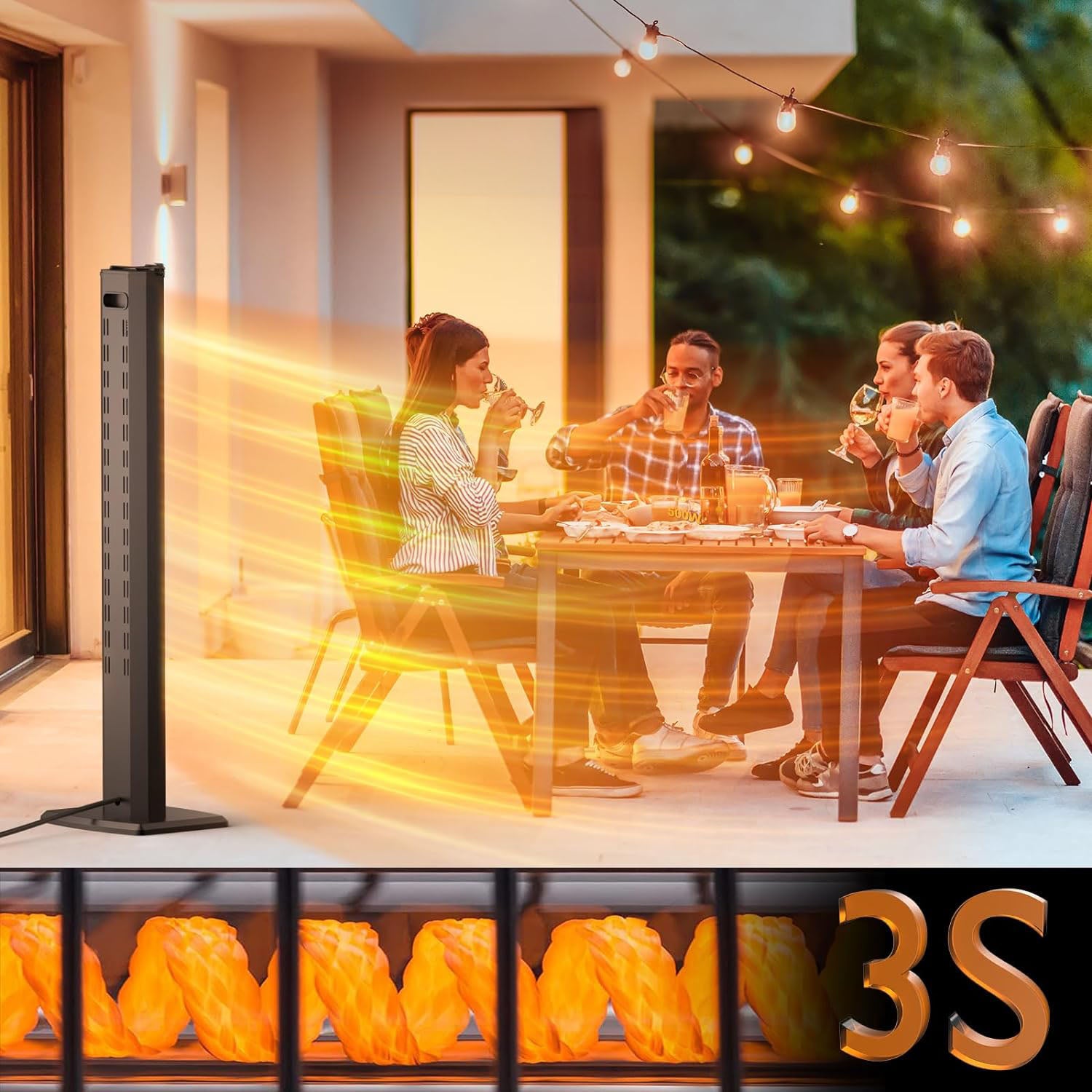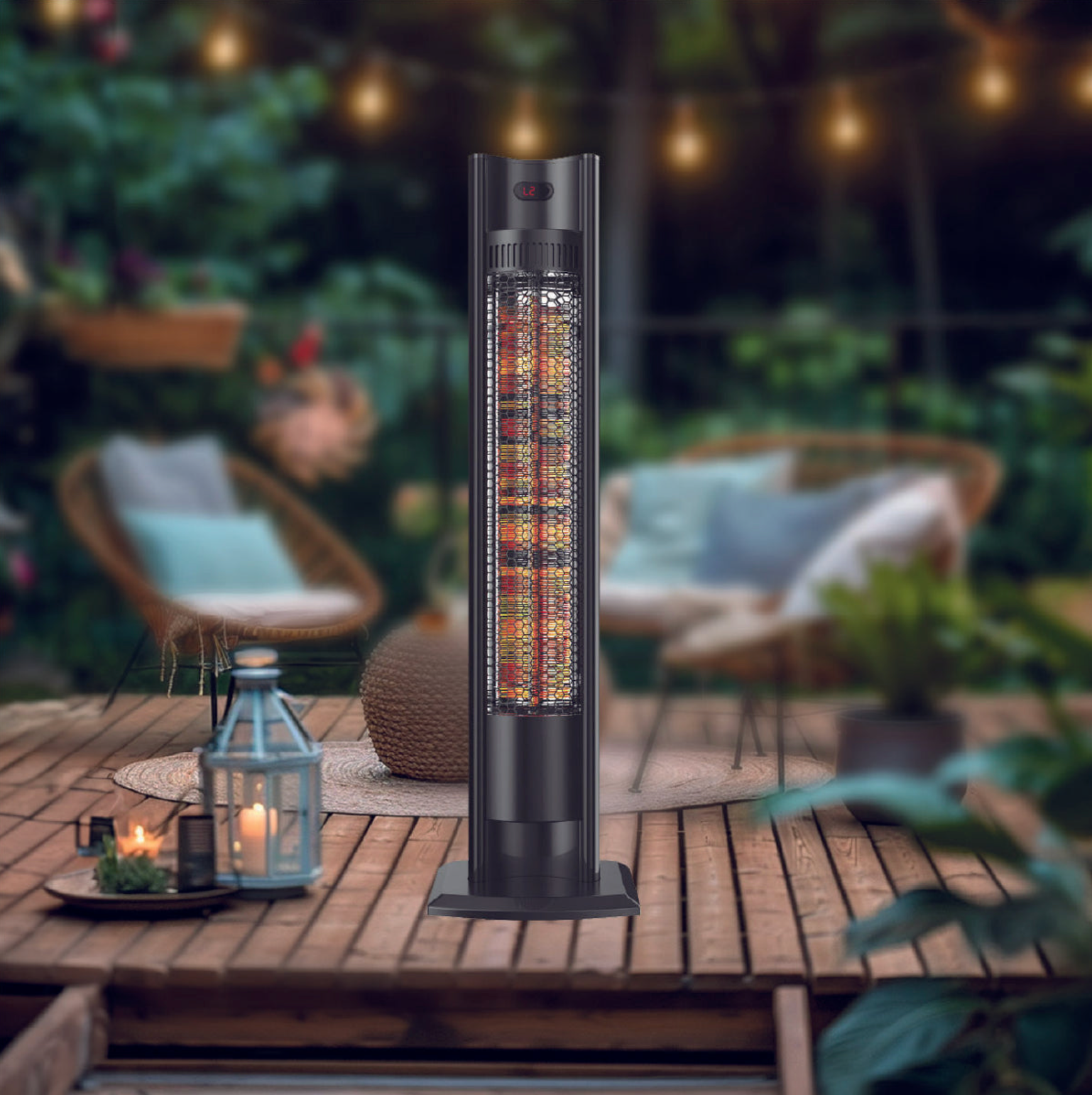 La energía consumida se transforma en calor directo, calentando objetos y personas en lugar del aire. Esto permite que el calor se absorba y se libere gradualmente, creando un entorno cálido y confortable al aire libre sin alterar la calidad del aire, ideal para disfrutar de noches agradables en el exterior.