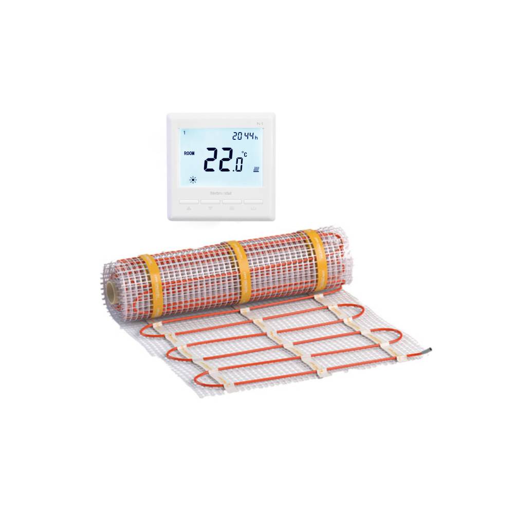La malla tiene un ancho de 50 cm y una potencia superficial de 150W/m2. Se vende en m2, en varias dimensiones, desde 0,5m2 hasta 16.3m2 Funciona con termostato digital programable con opción WiFi