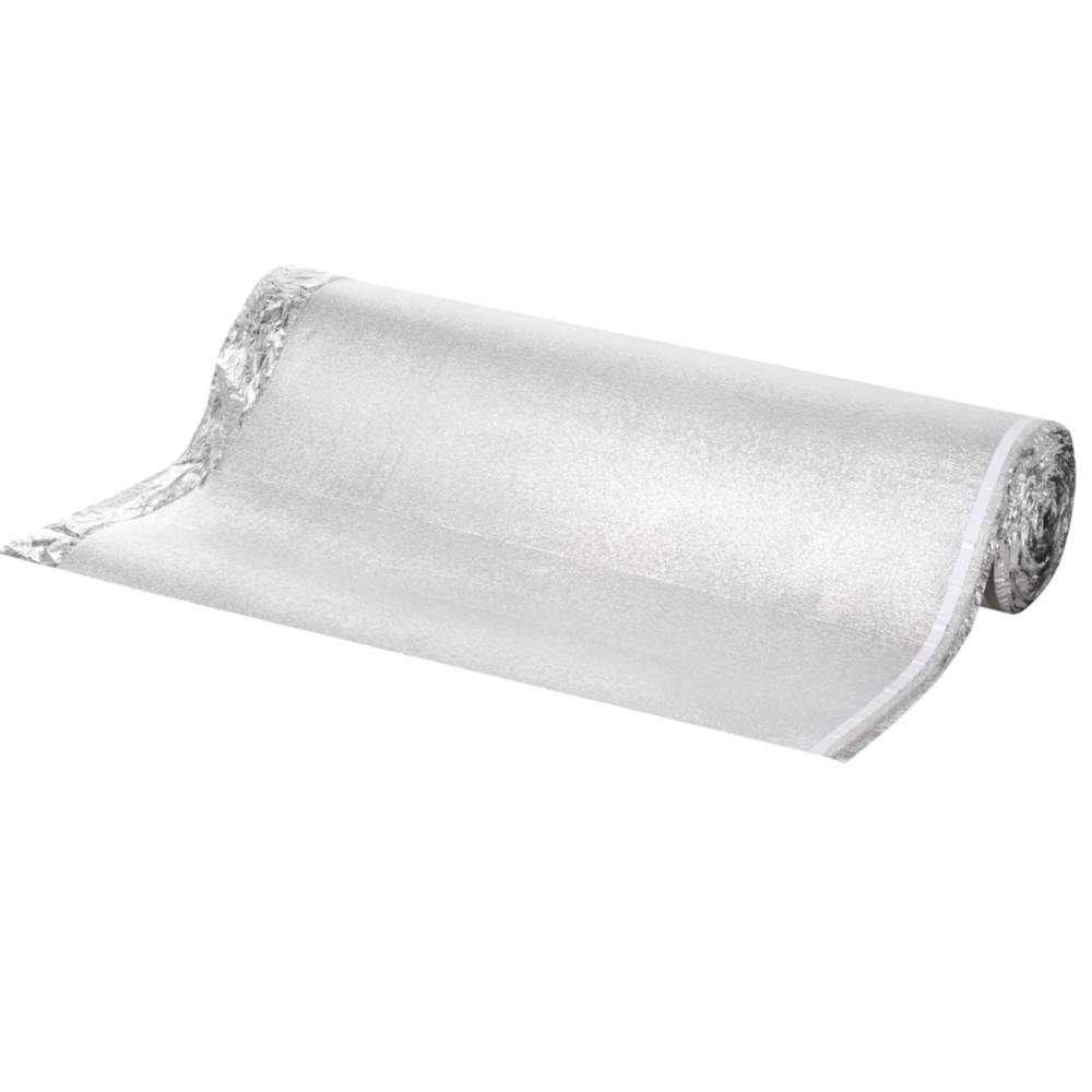 Está compuesta por una plancha de goma EVA y un film de aluminio en su cara inferior, que brinda las cualidades de barrera de vapor y mejora la acción térmica de los pisos radiantes.