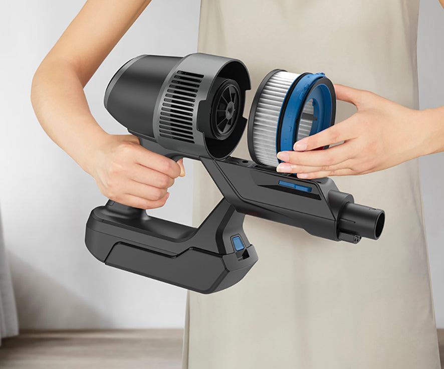 Los filtros se pueden desmontar para limpiarlos y lavarlos cómodamente. La limpieza regular de los filtros garantiza una succión duradera sin obstrucciones